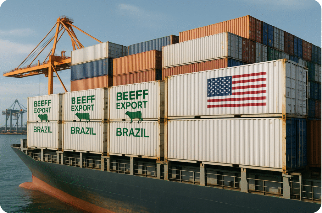 O movimento ocorre após meses de tensão comercial, nos quais o pacote de tarifas de 50% implementado em abril reduziu drasticamente os embarques brasileiros, sobretudo de carne bovina. Segundo o Bradesco BBI, o impacto foi imediato: frigoríficos precisaram redirecionar volumes para destinos alternativos, mas com preços menos favoráveis, comprimindo margens e reduzindo o prêmio historicamente pago pelo mercado americano. Entre janeiro e julho, 11% das exportações brasileiras de carne bovina tiveram os Estados Unidos como destino, percentual que despencou nos meses subsequentes.
